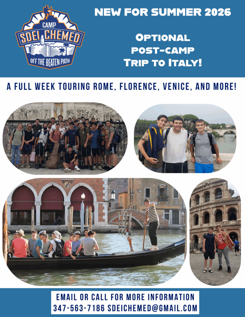 S’dei Chemed has toured Italy many times in the past, and it has always been a tremendous success. This year, because of the Jewish calendar, camp ends unusually early — making it the perfect opportunity to offer an exciting post-camp program for those interested.